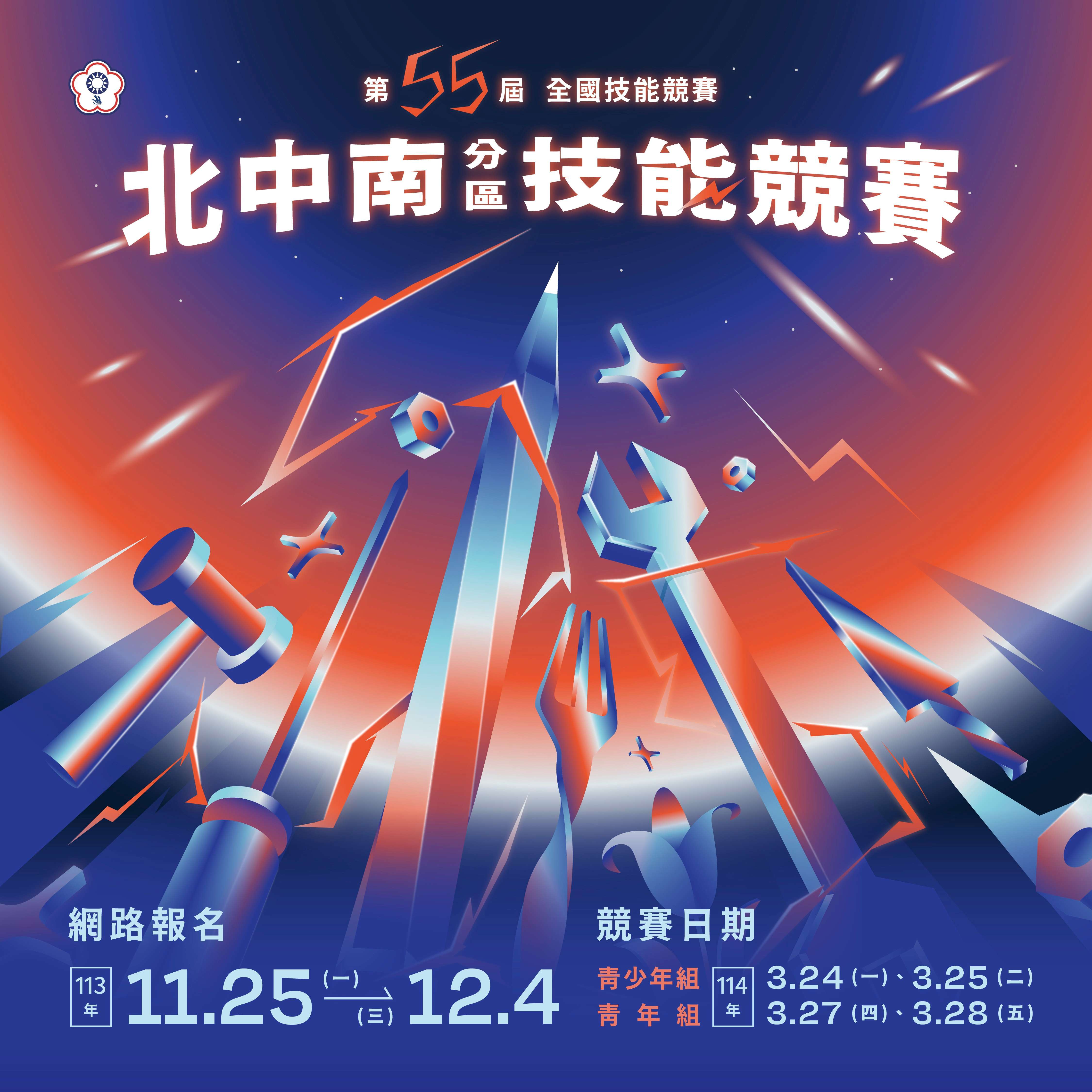二、為推廣技職教育勞動部每年舉辦全國技能競賽,第55屆分區技能競賽訂於114年3月24日至3月29日於北、中、南三區共同舉辦,並訂於113年11月25日至12月4日開放網路報名,簡章詳洽技能檢定中心官網賽最新消息(網址: https://www.wdasec.gov.tw)。