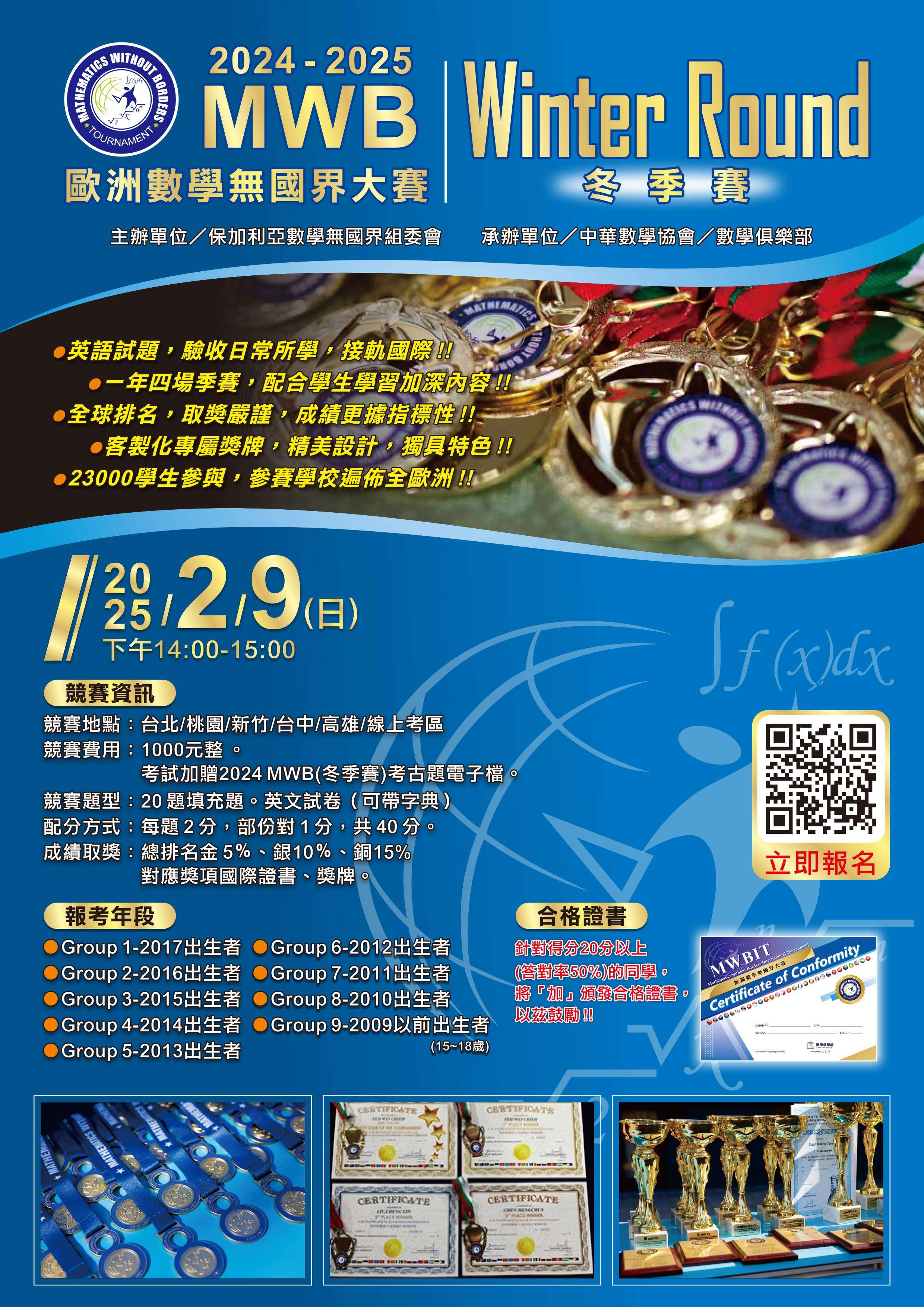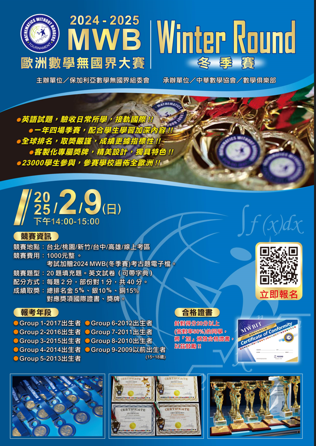 「2024-2025賽季數學無國界大賽(M athem atics W ithout B ordersInternational Tournament,簡稱MWBIT)」Winter Round,
