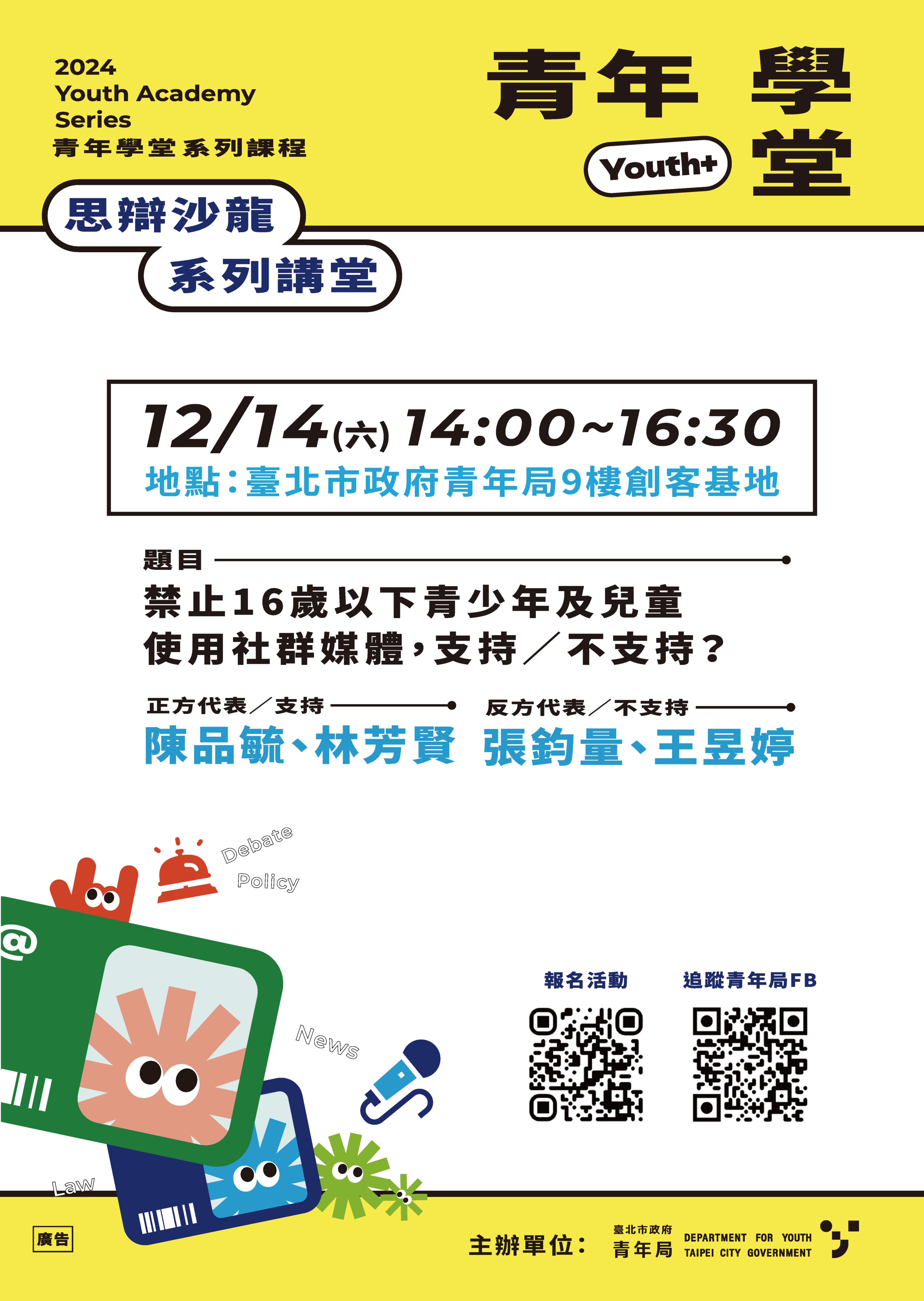 (四)活動議題:禁止16歲以下青少年及兒童使用社群媒體,支持/不支持?