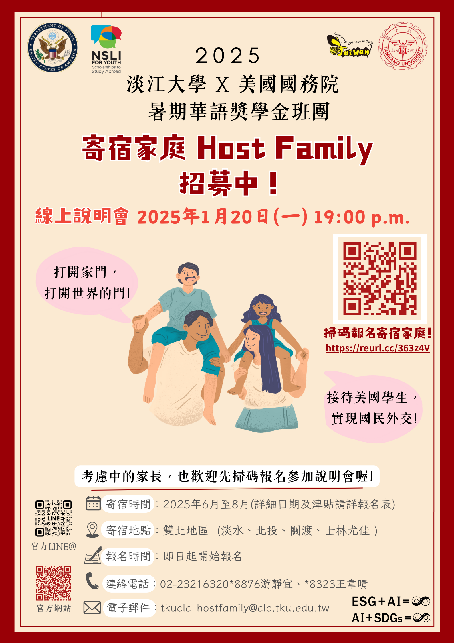 六、聯絡人:游靜宜、王韋晴,電話:(02)2321-6320轉8876、 8323,電子信箱:tkuclc_hostfamily@clc.tku.edu.tw。
