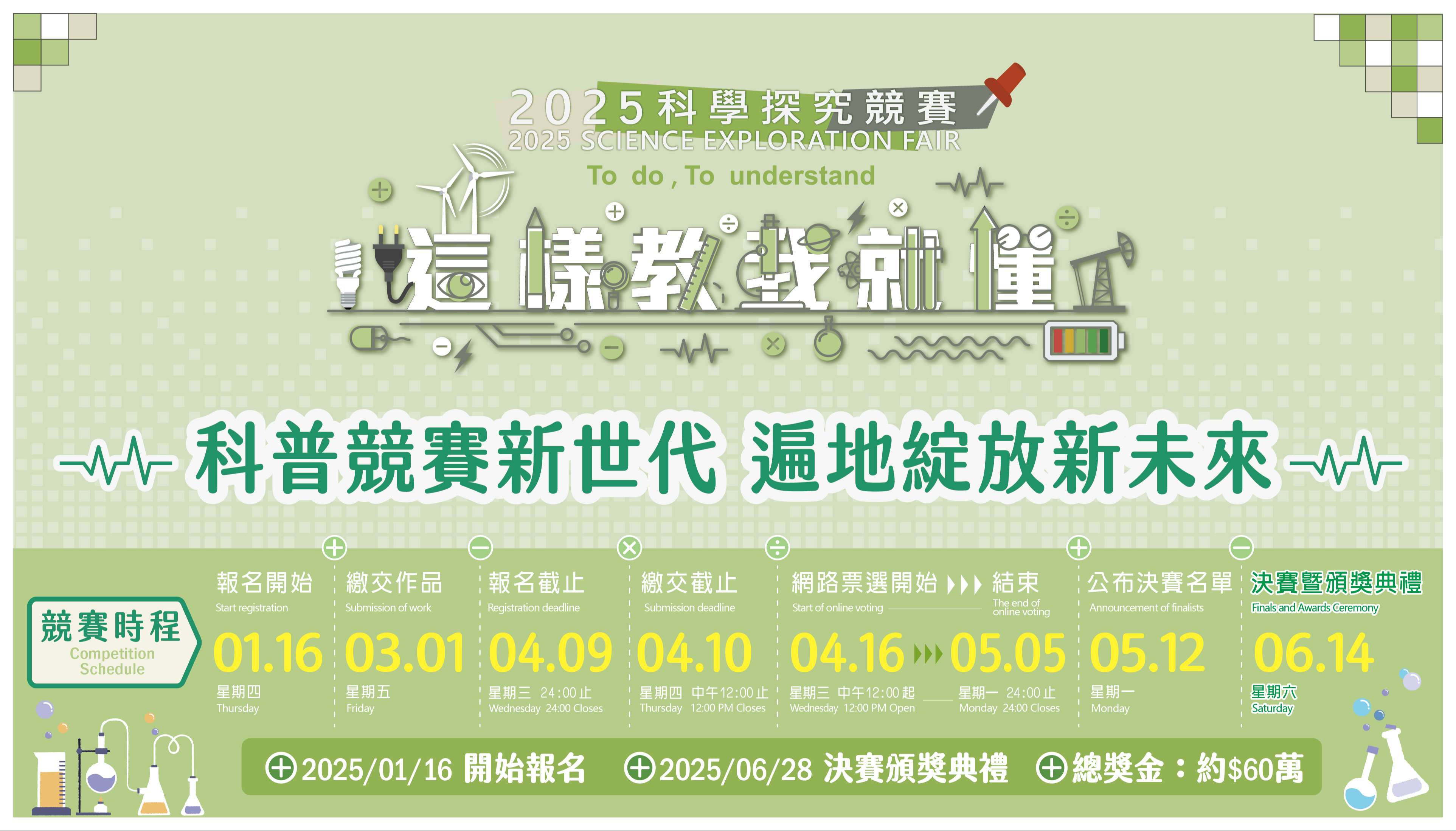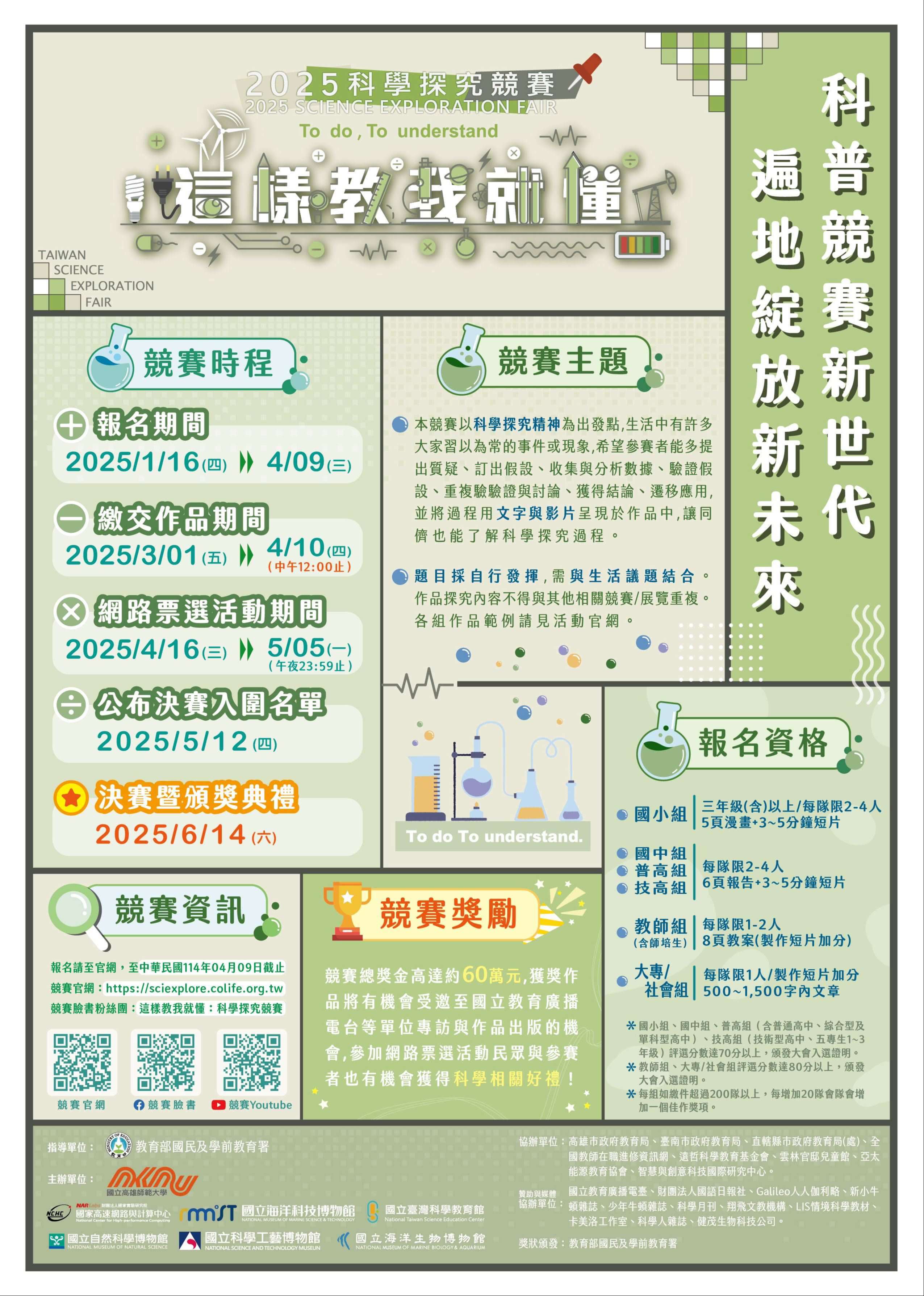 轉知國立高雄師範大學2025年「科學探究競賽-這樣教我就懂」科普競賽活動