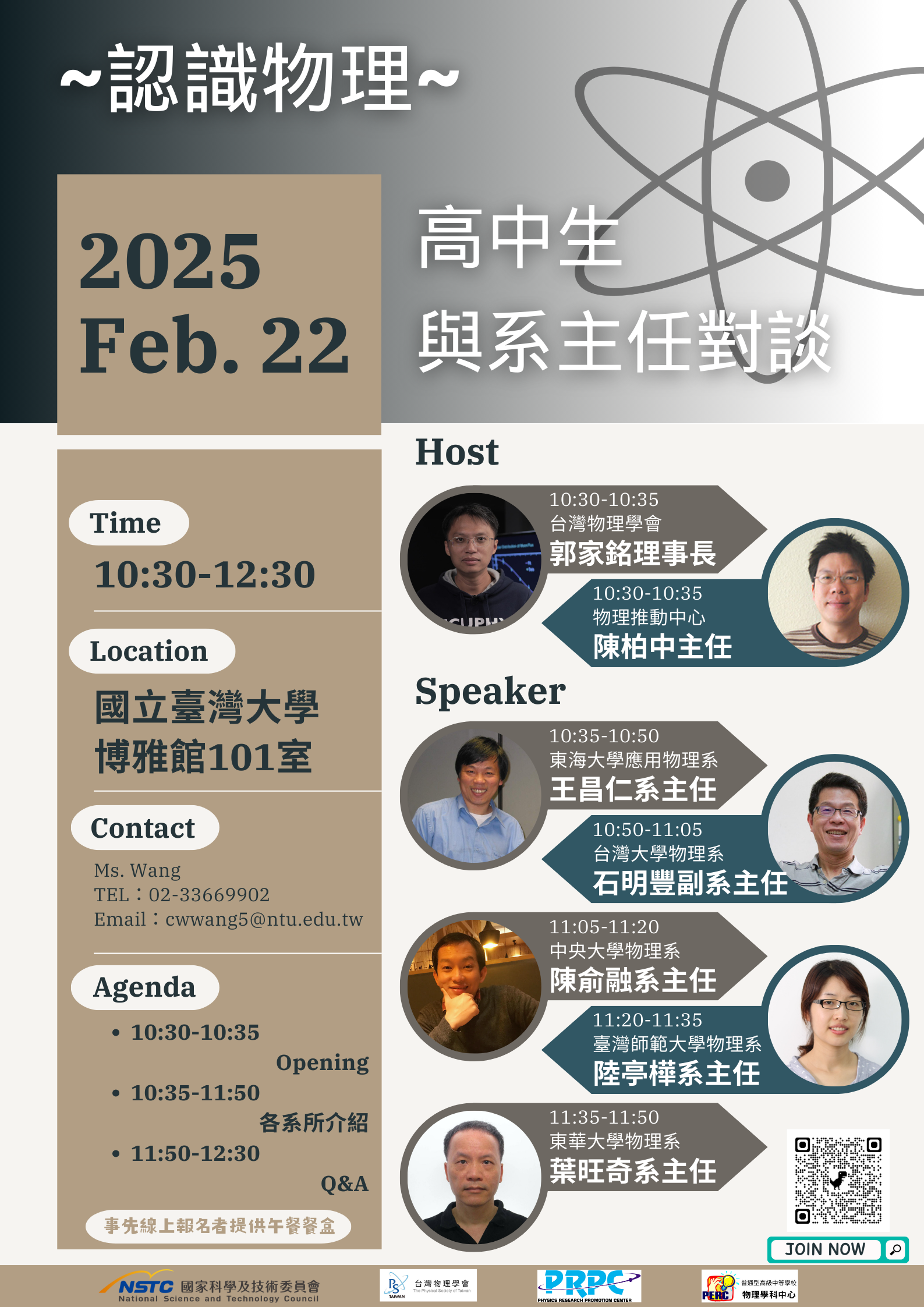 (四)如有任何問題請洽物理研究推動中心施小姐電話:(03)574-2647、信箱:prpc@phys.nthu.edu.tw;科學推展中心數學組王小姐電話:(02)3366-9902、信箱:cwwang5@ntu.edu.tw。