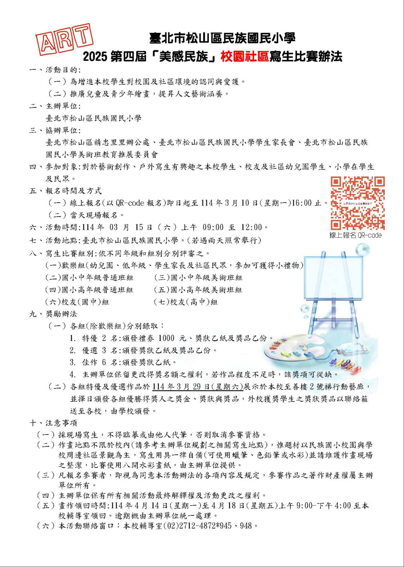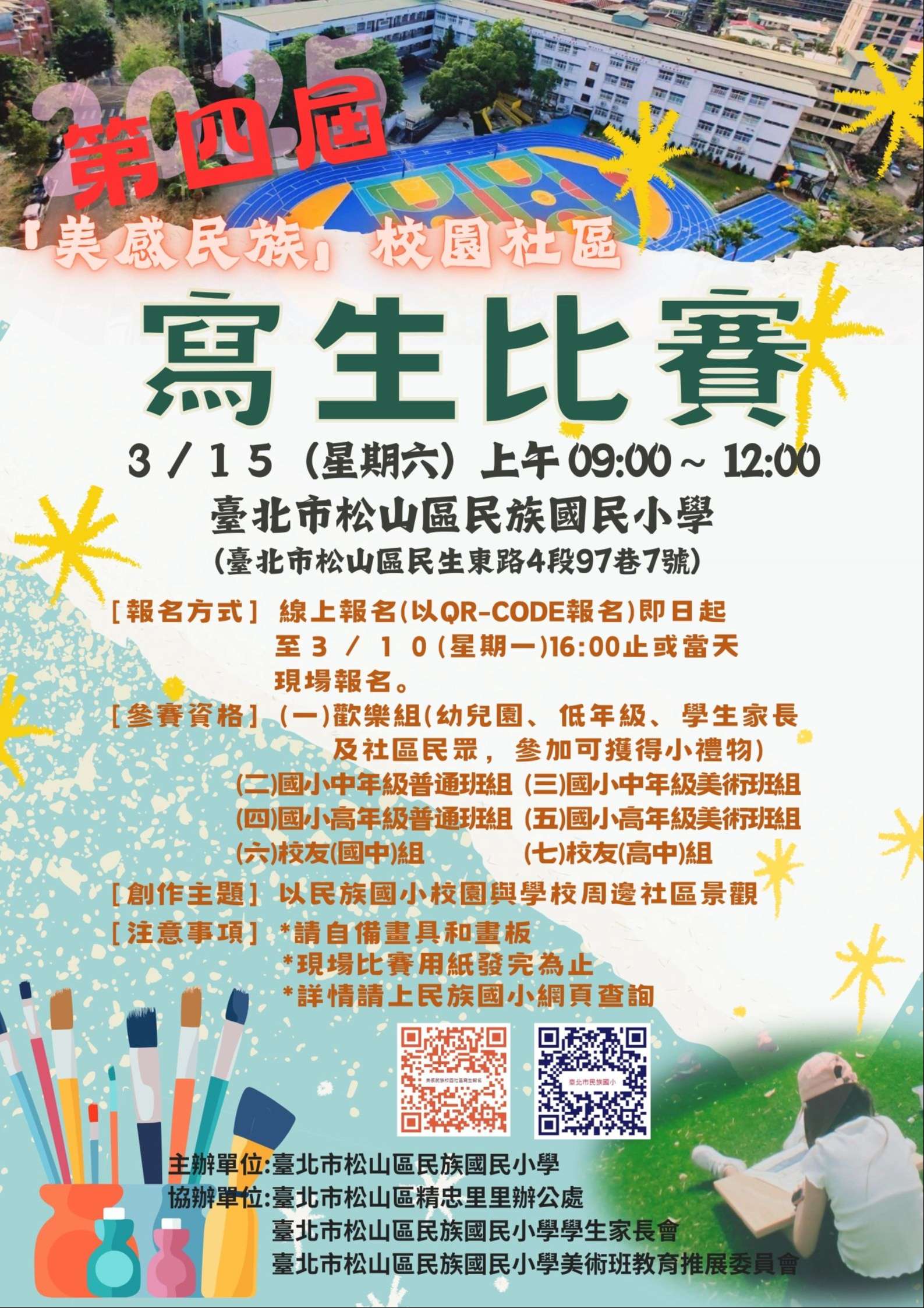 轉知臺北市松山區民族國民小學「2025第四屆美感民族校園社區寫生比賽」活動比賽辦法及海報