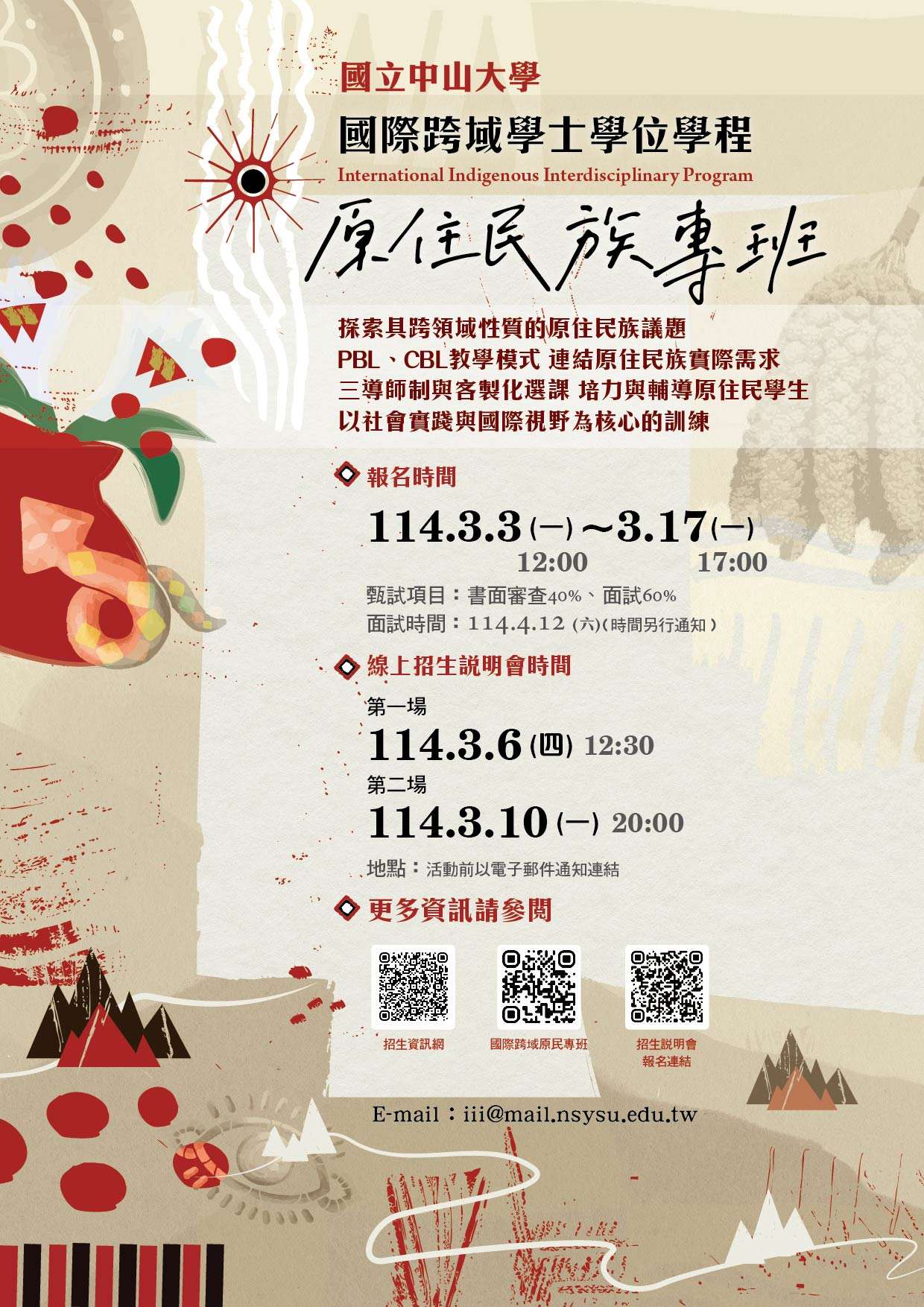 依據國立中山大學114年2月25日中國際跨域學士學程字第1147500039號函辦理。