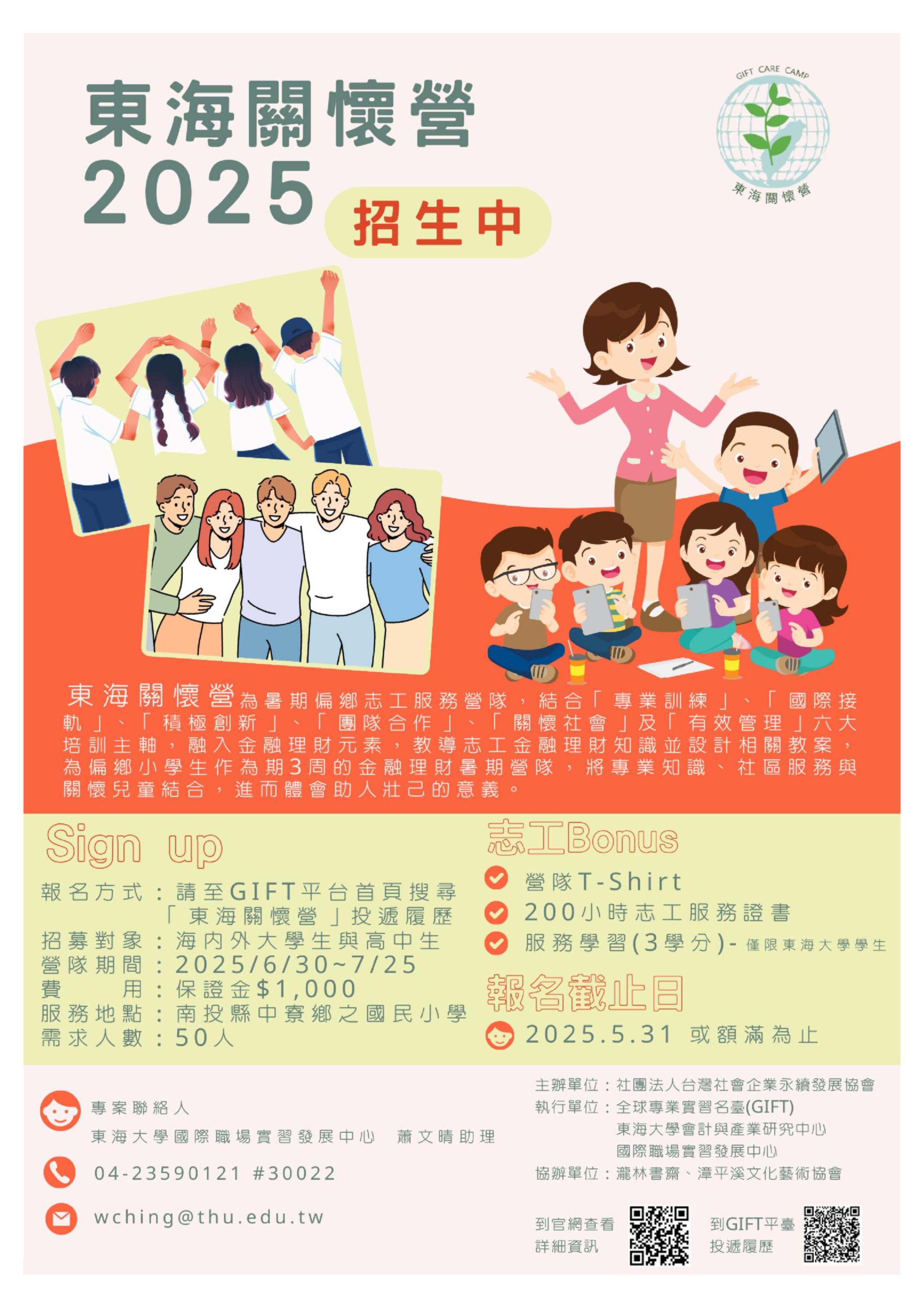 轉知東海大學第九屆「東海關懷營」之志工招募: