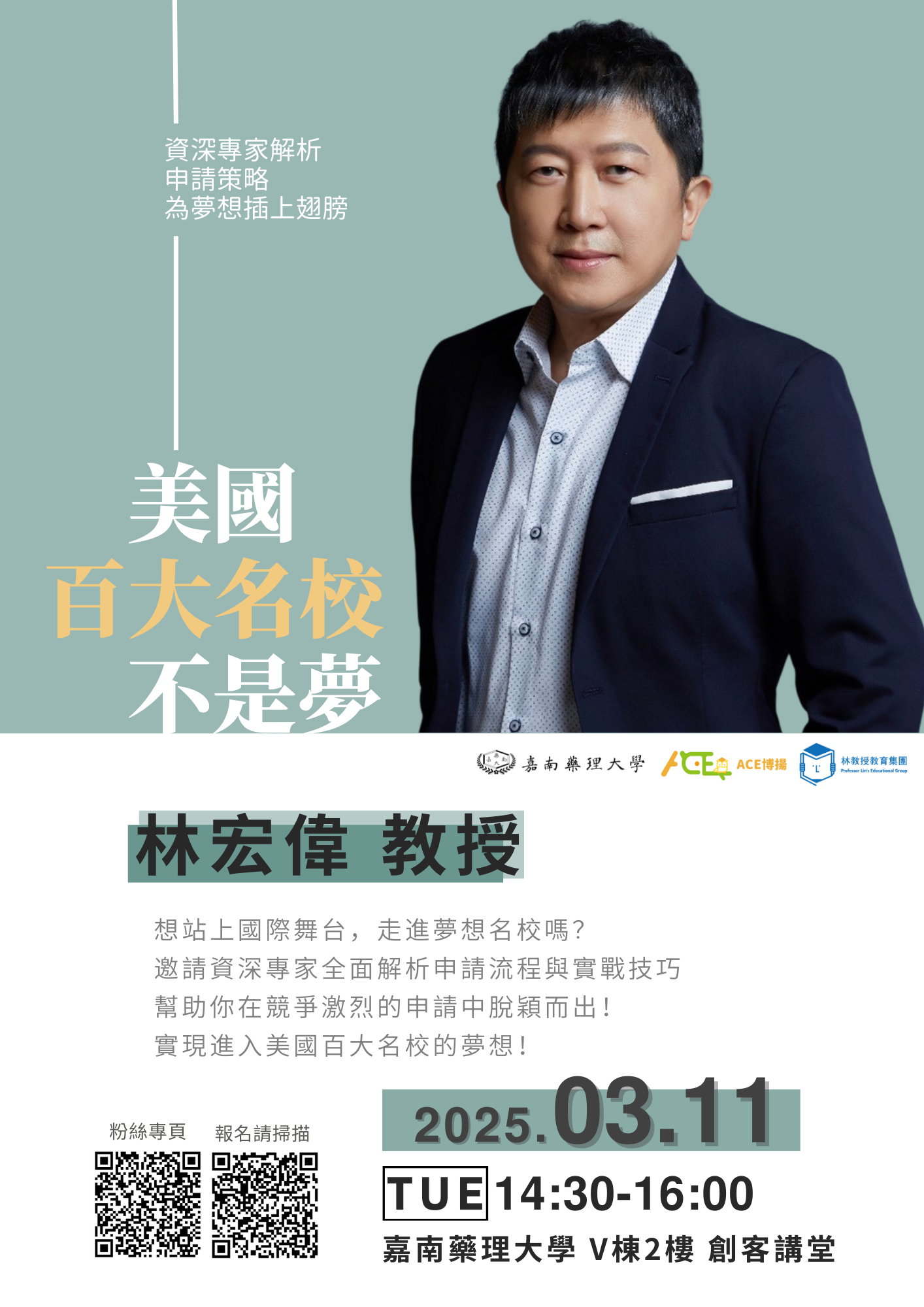旨揭講座,將為學生提供寶貴的申請資訊和技巧,助力學生在競爭激烈的申請過程中脫穎而出。