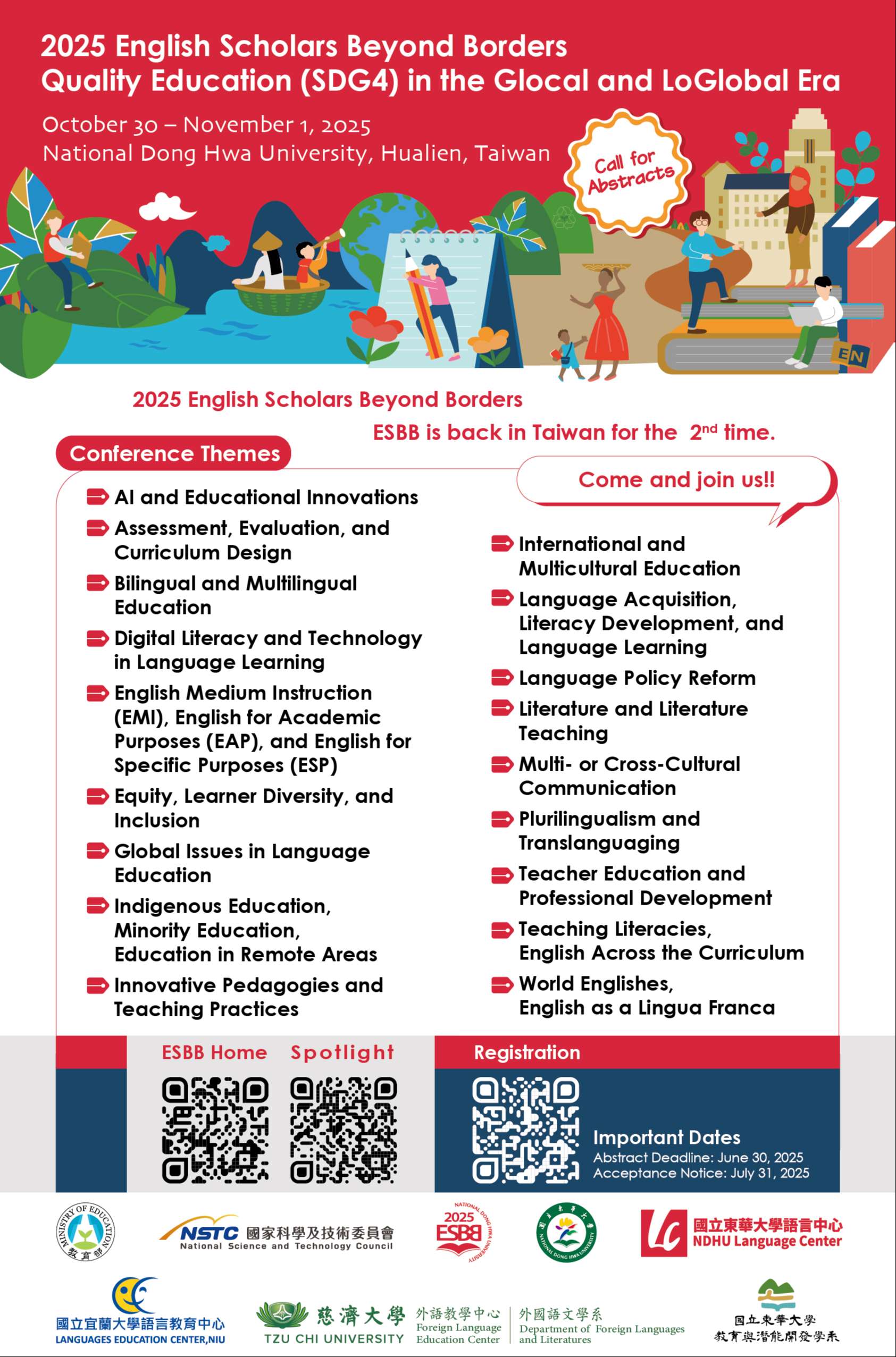 二、本研討會旨在匯聚學術界與實務界的專家,共同探討如何 透過跨文化、跨領域的合作,推動教育品質提升,縮短教 育資源落差,並促進多元學習機會。期望透過理論與實踐 的交流,探討語言教育、課程設計、師資培育、多語教 育、數位學習等關鍵議題,進一步推動全球教育發展,議 程充實豐富,精彩可期,歡迎踴躍參與及投稿。