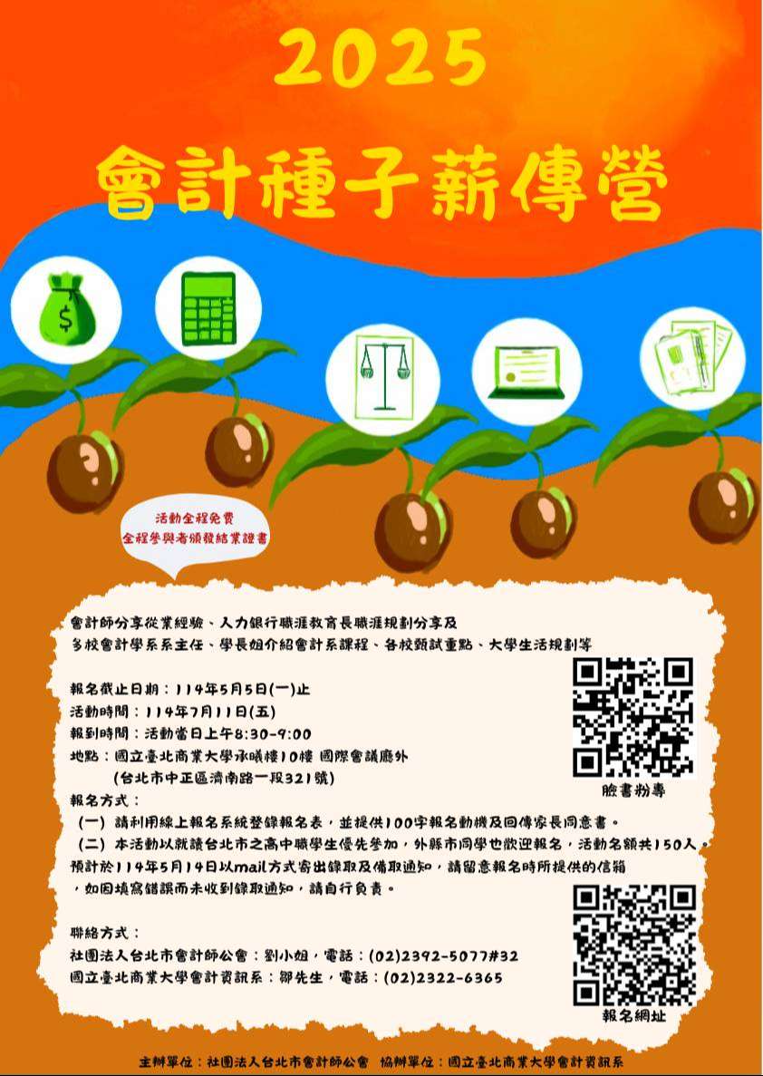 ●國立臺北商業大學會計資訊系:鄒復証先生,電話:(02)2322-6365