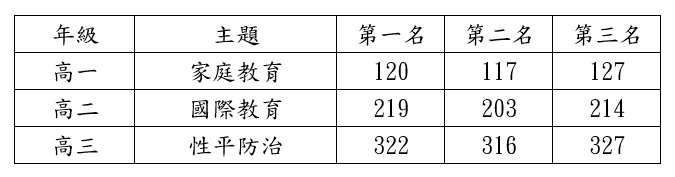 請獲獎班級派代表至訓育組簽領獎狀及禮劵!
