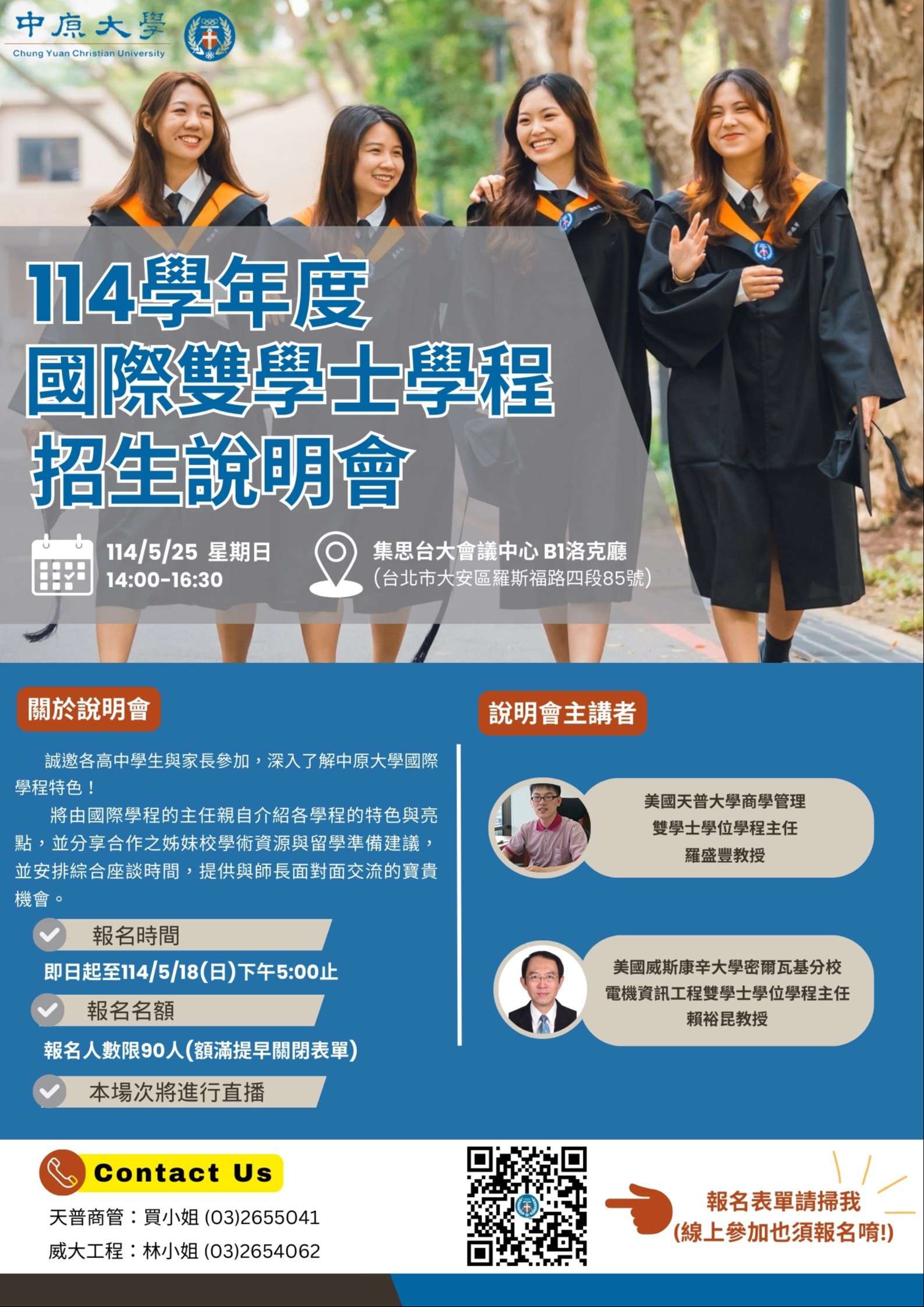 依據中原大學114年4月25日原電字第1140001569號函辦理。