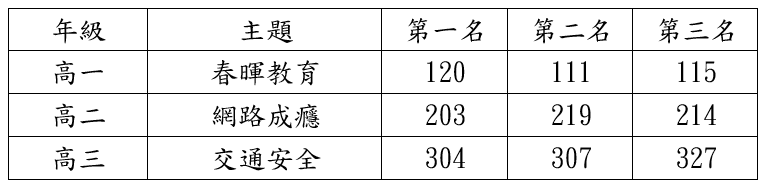 請獲獎班級派代表至訓育組簽領獎狀及禮劵!
