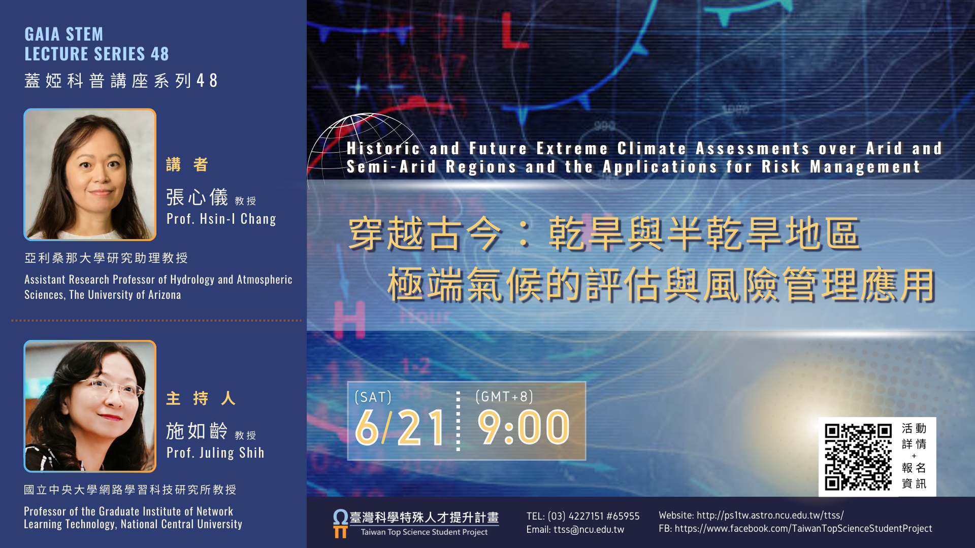 國立中央大學辦理線上《蓋婭科普講座系列 48》「穿越古今:乾旱與半乾旱地區極端氣候的評估與風險管理應用」: