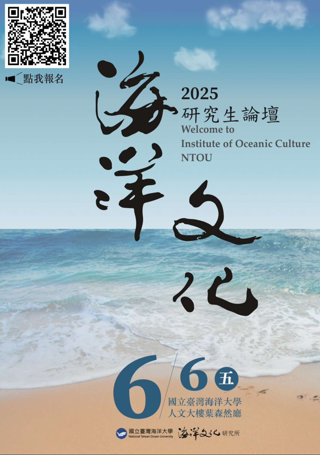 一、論壇乃為促進全國研究生能更加關心海洋事務,深入相關議題研究,帶動國內海洋文化研究風氣,進而引領風潮,特地配合6月8日聯合國世界海洋日,訂於2025年6月6 日舉辦以研究生為主之「2025海洋文化研究生論壇」。