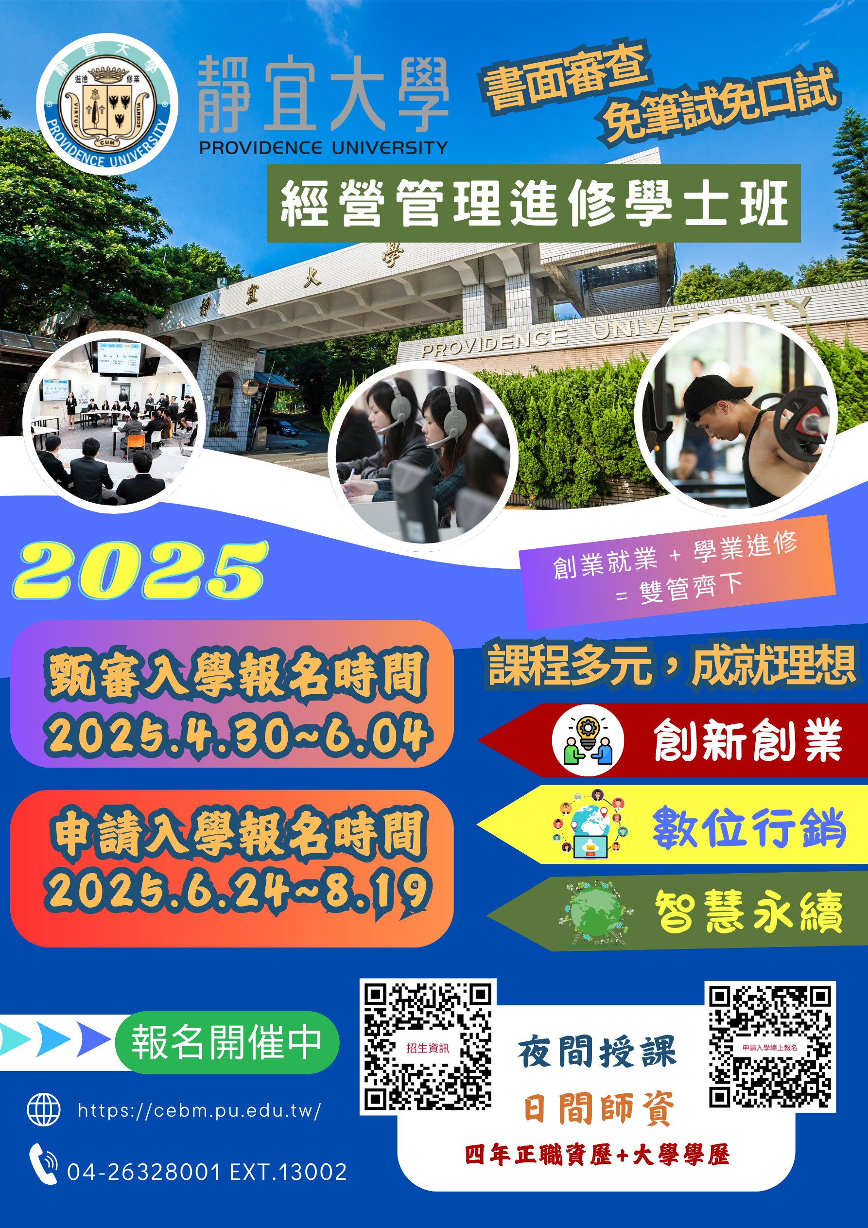 該校經營管理進修學士班經教育部核定自114學年度起恢復招生,第二階段申請入學自114年6月24日上午10時起至8月19日晚間24時止開放網路報名。