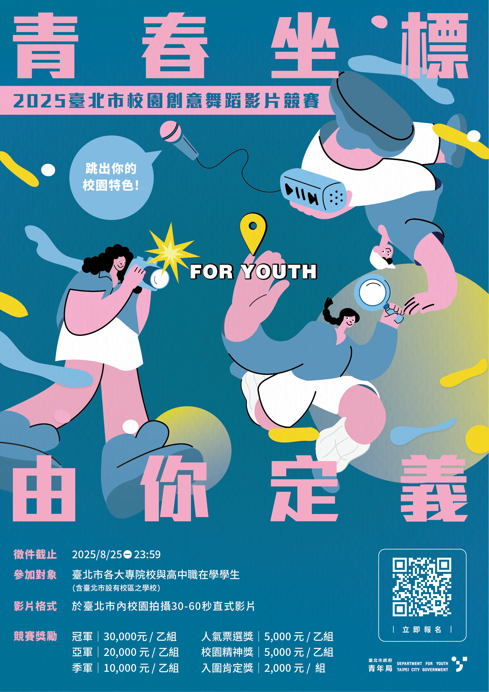 一、活動名稱:「For Youth 青春坐標・由你定義」2025臺北市校園創意舞蹈影片競賽。