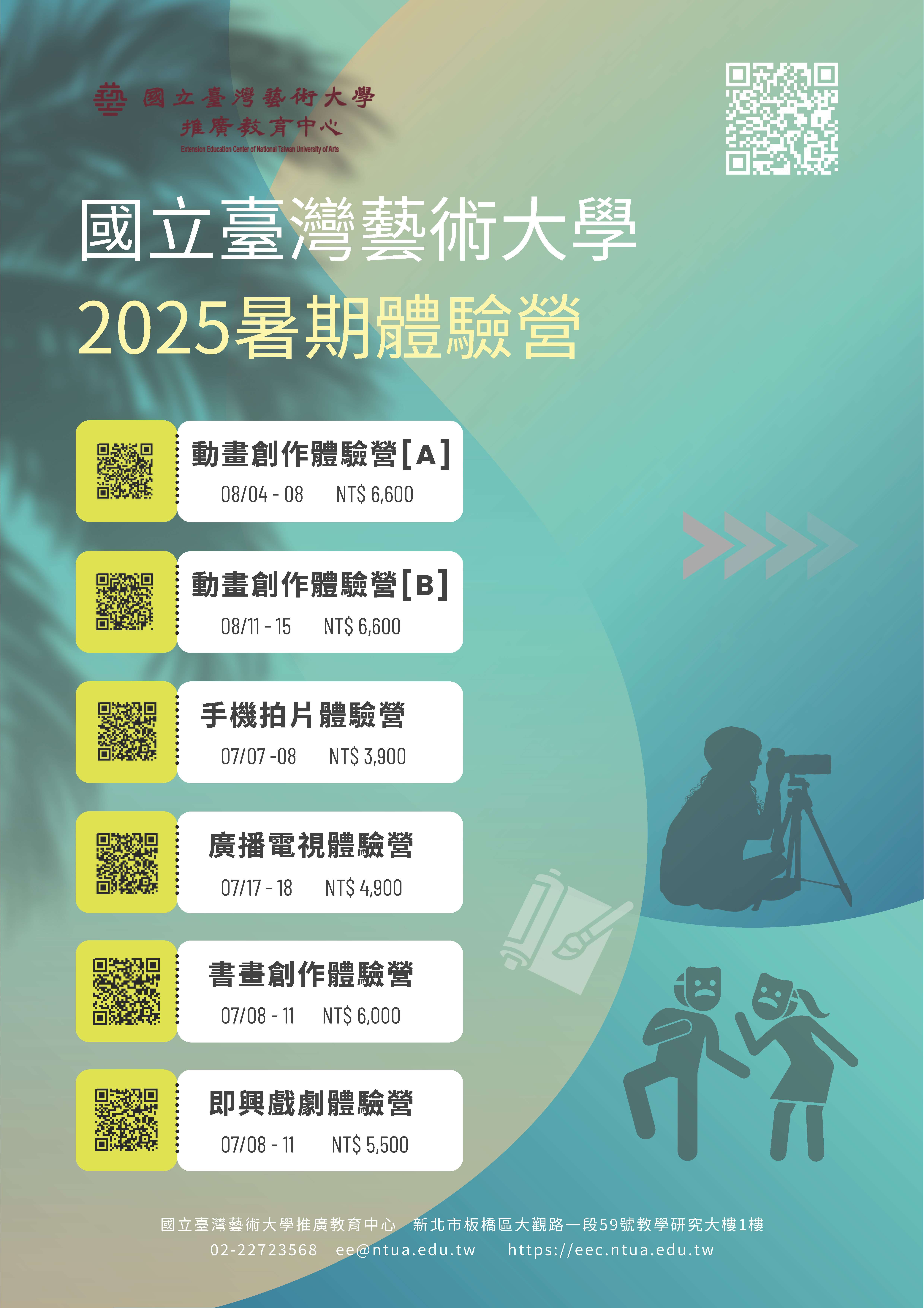 轉知國立臺灣藝術大學推廣教育中心辦理「2025暑期體驗營」活動