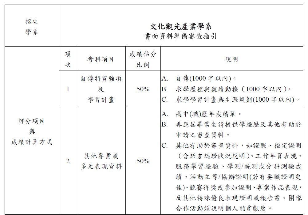 免繳報名費,審查資料檔案上傳占比:自傳特質強項及學習計畫50%、其他專業或多元表現有利資料50%。