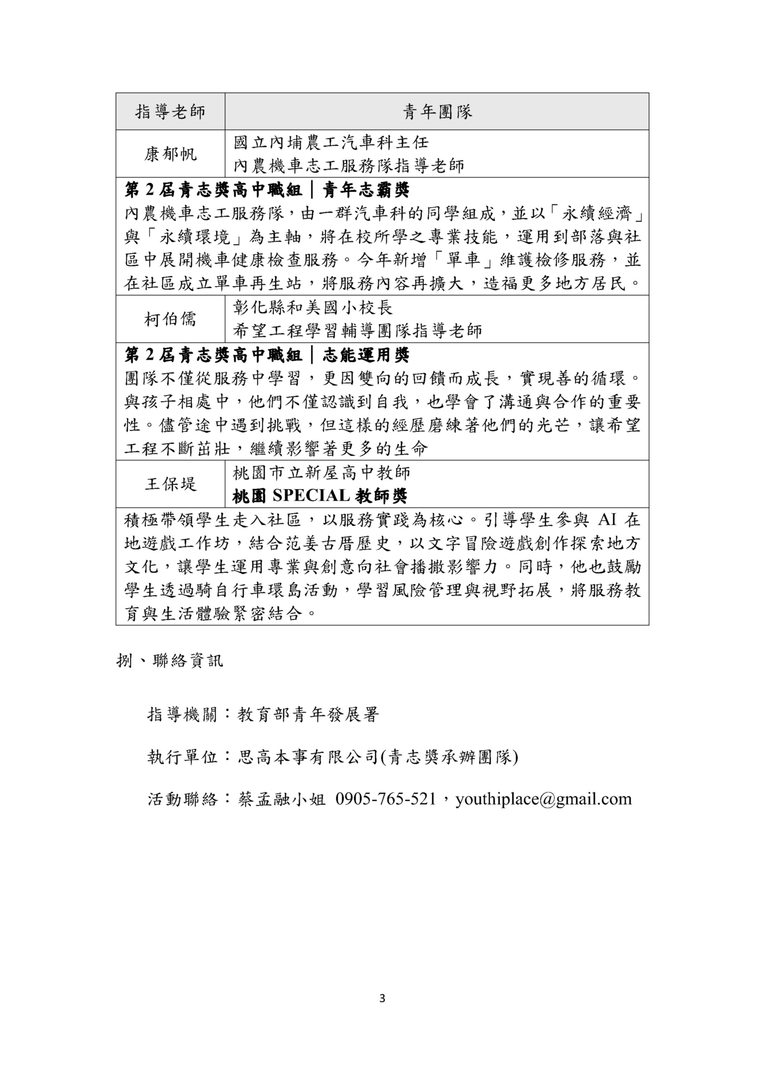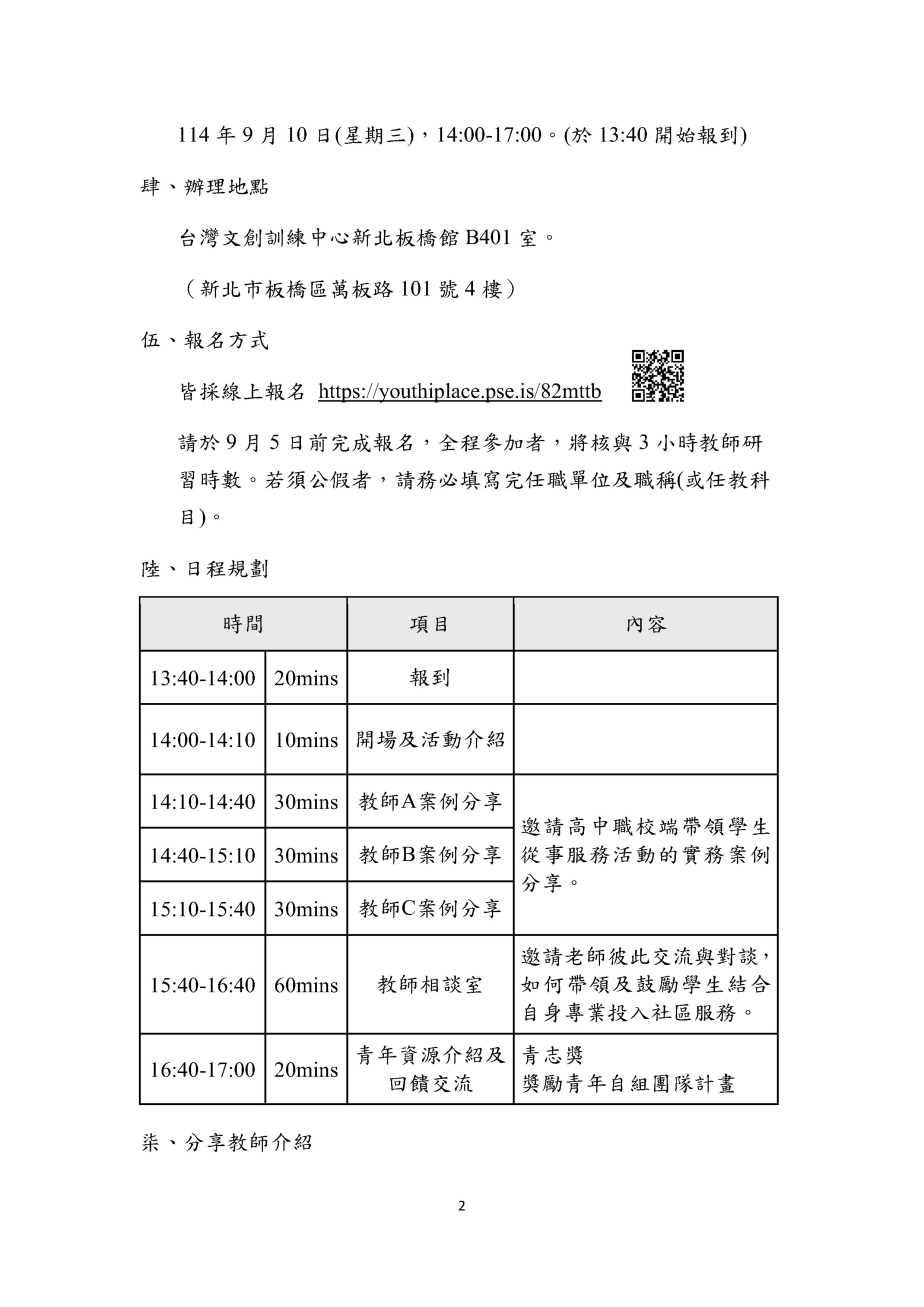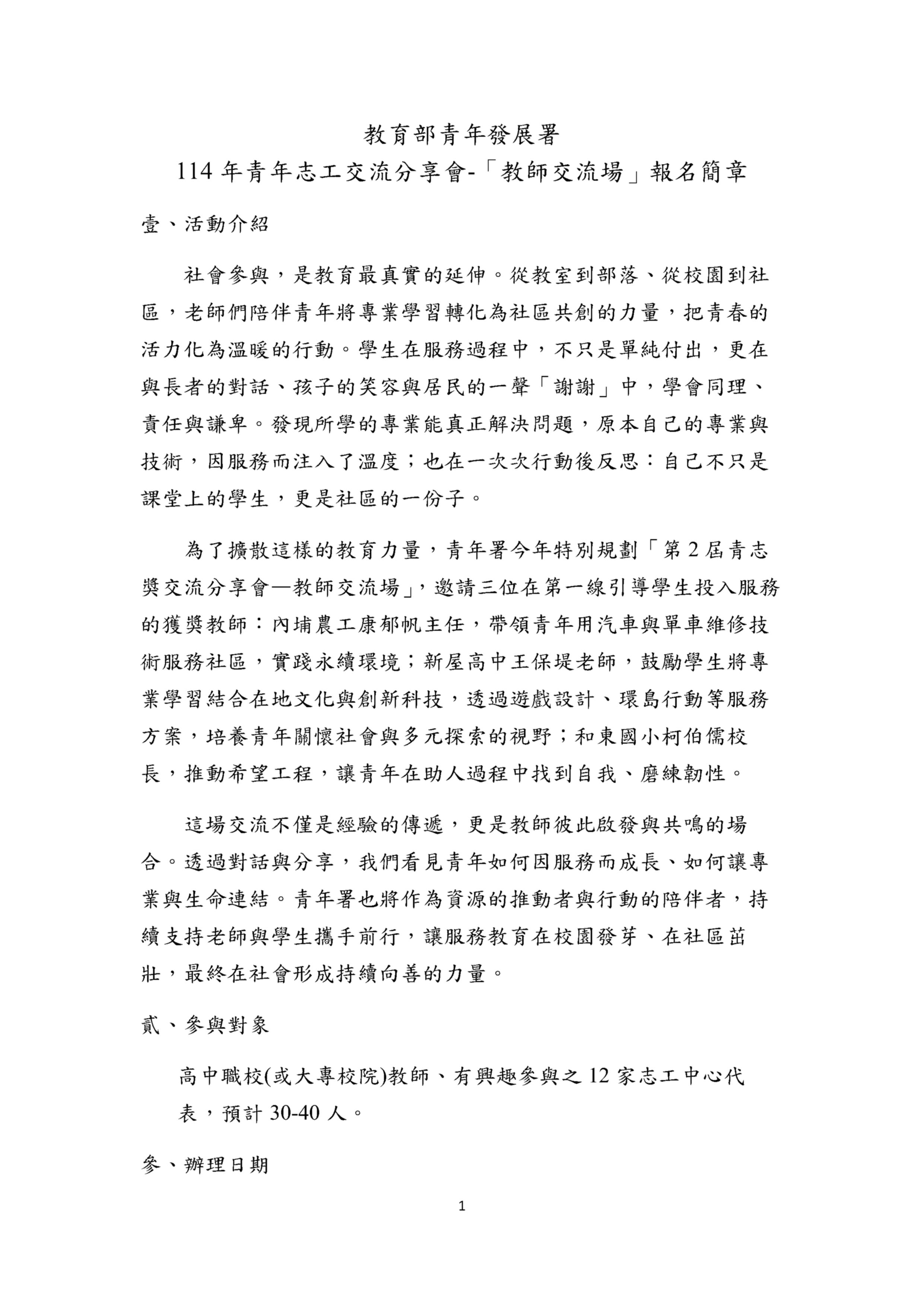 青年發展署(下稱青年署)於114年9月10日辦理「青年志工交流分享會-教師交流場」: