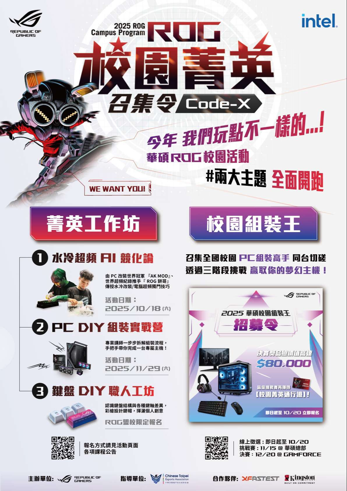 活動分「菁英工作坊」、「校園組裝王」兩大主題,說明如下: