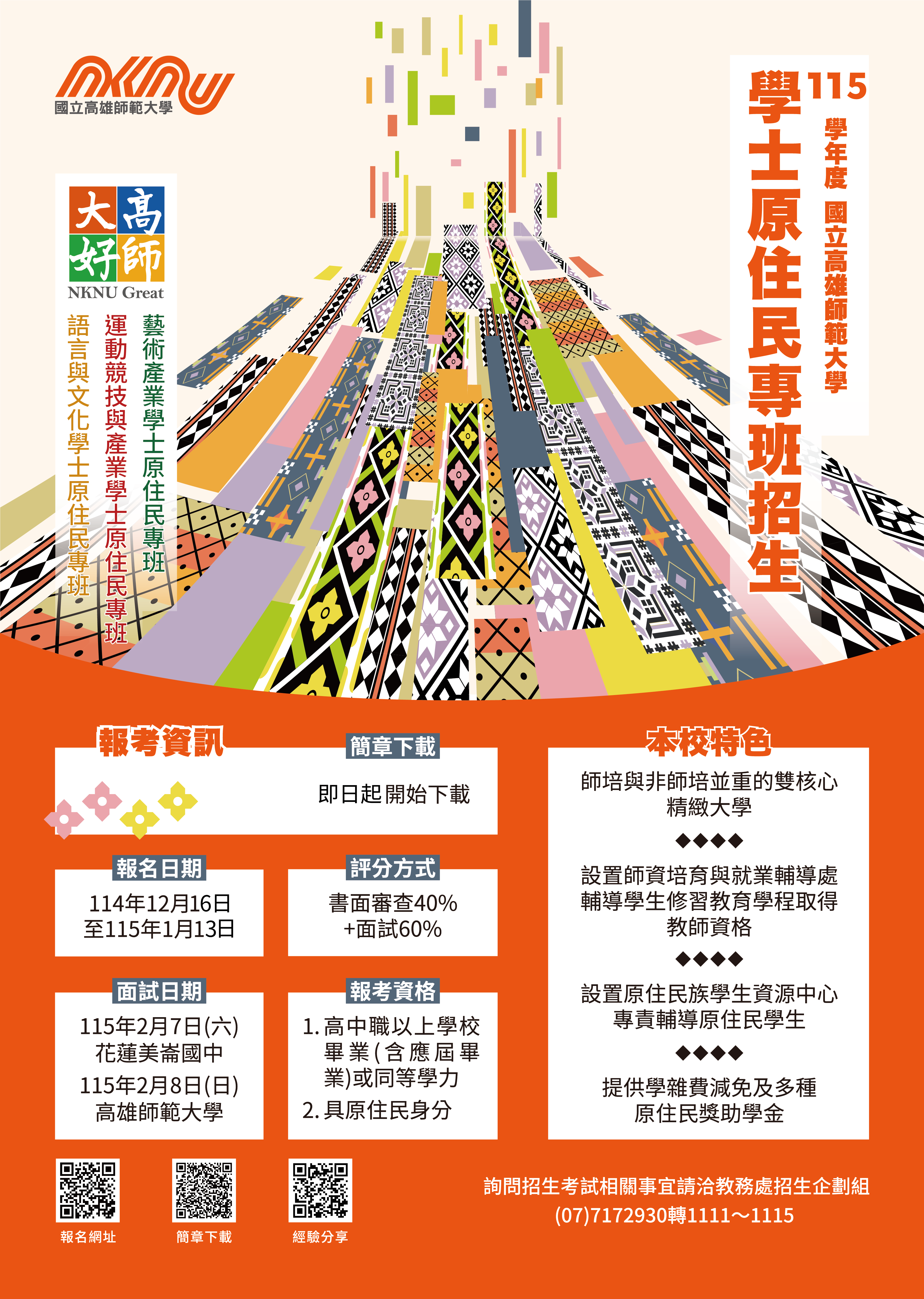 【115升學】115學年度學士原住民專班招生資訊_國立高雄師範大學