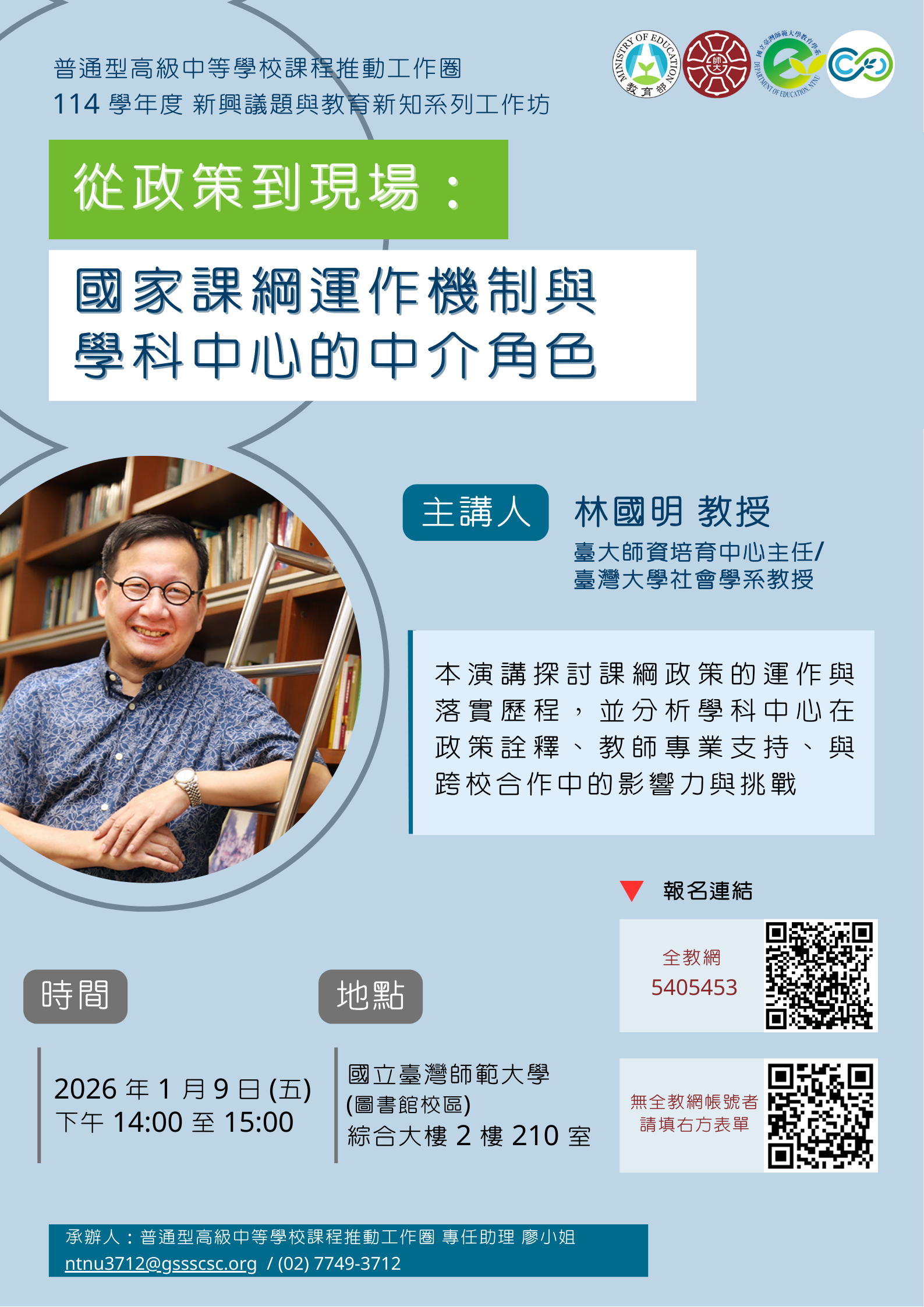(四)主講者:林國明教授(臺大師資培育中心主任/臺大社會學系教授)。