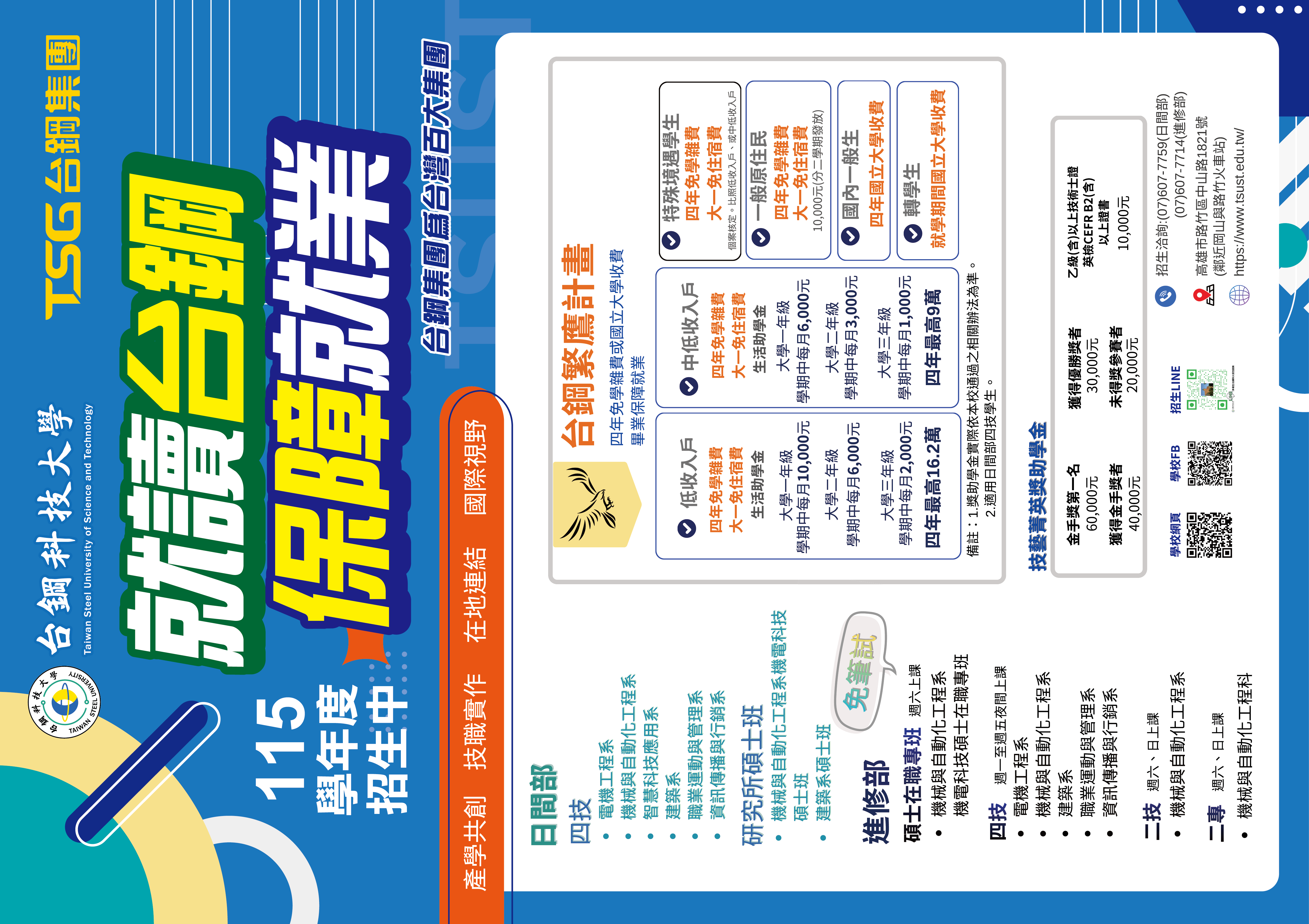 【115升學】115學年度台鋼科技大學招生宣傳_台鋼學校財團法人台鋼科技大學請見附件(海報)