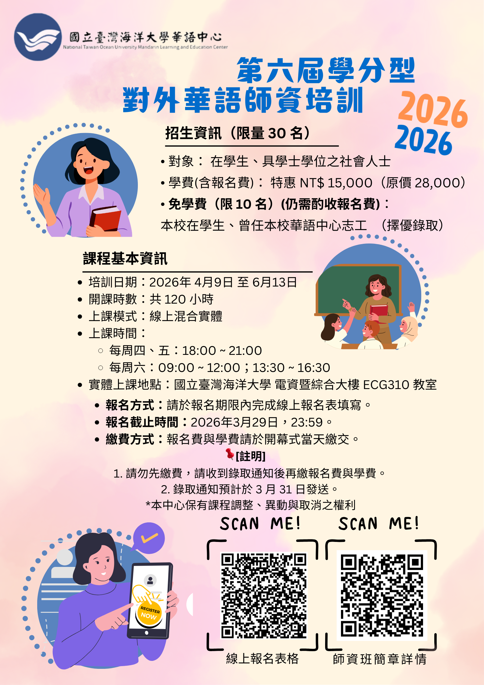 (四)報名對象: 在學生(大學含以上)及具學士學位且對華 語教學有興趣之社會人士 。