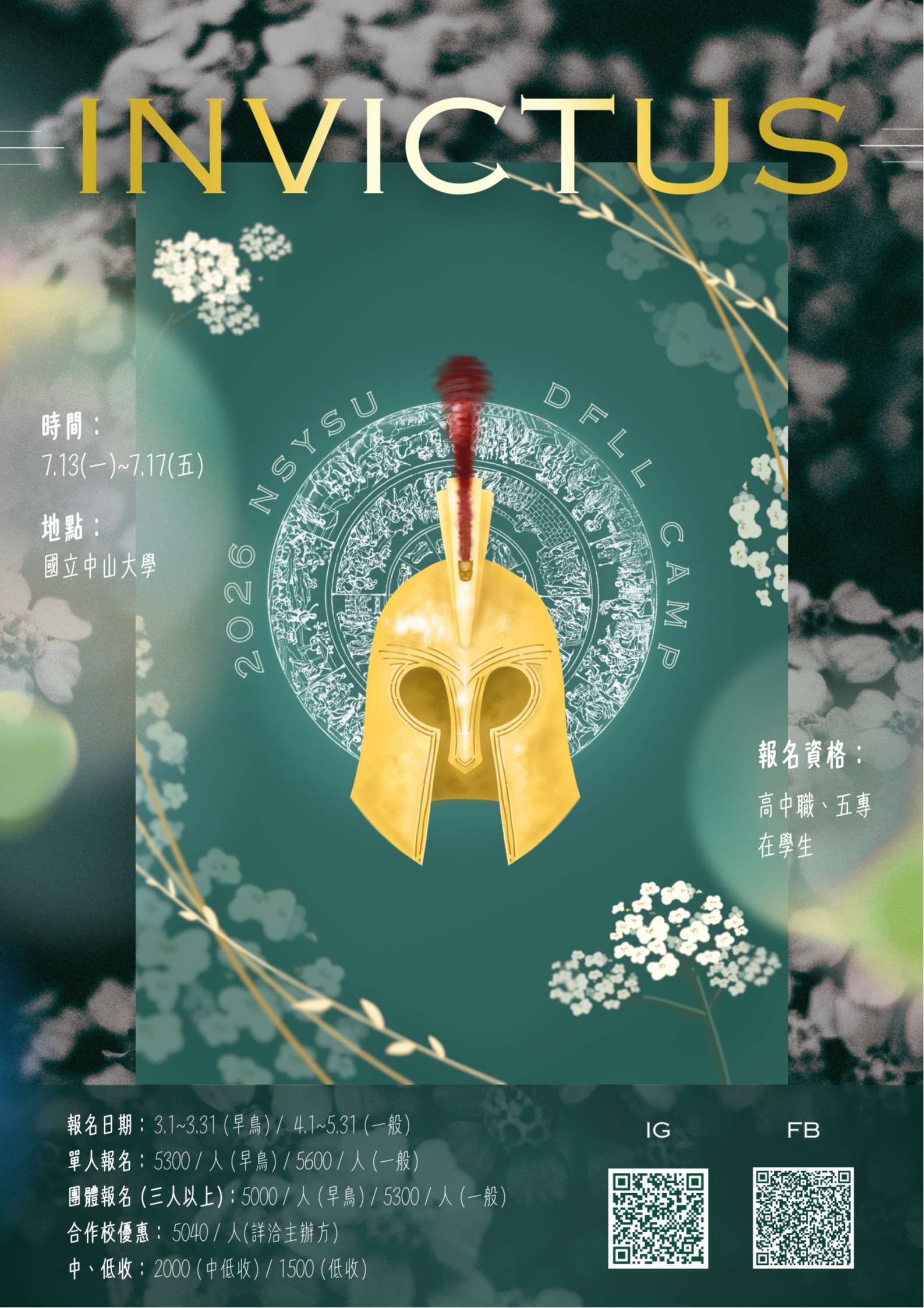 (一)招生對象及名額:公私立高中職及五專在學生,預計60人