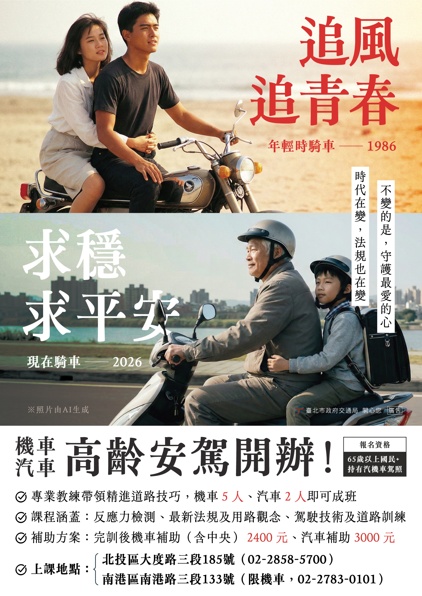 📣報名資格:65歲以上,持有汽機車駕照,報名該車種課程。