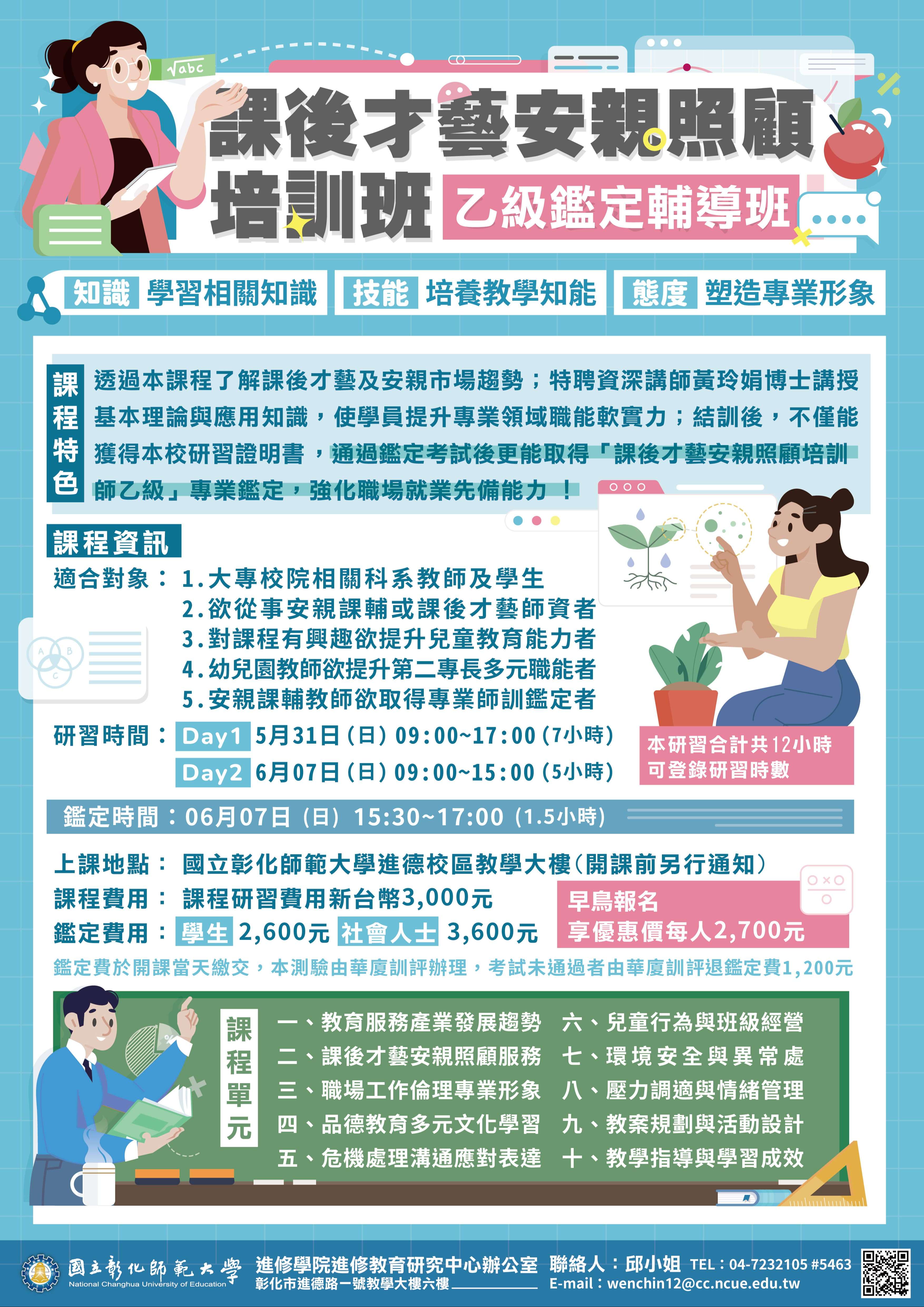 二、「課後才藝安親照顧培訓師乙級鑑定輔導班」