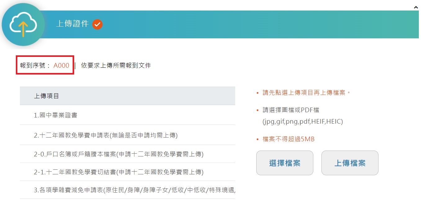 請登入新生報到系統,於「上傳證件」區左上角查詢。