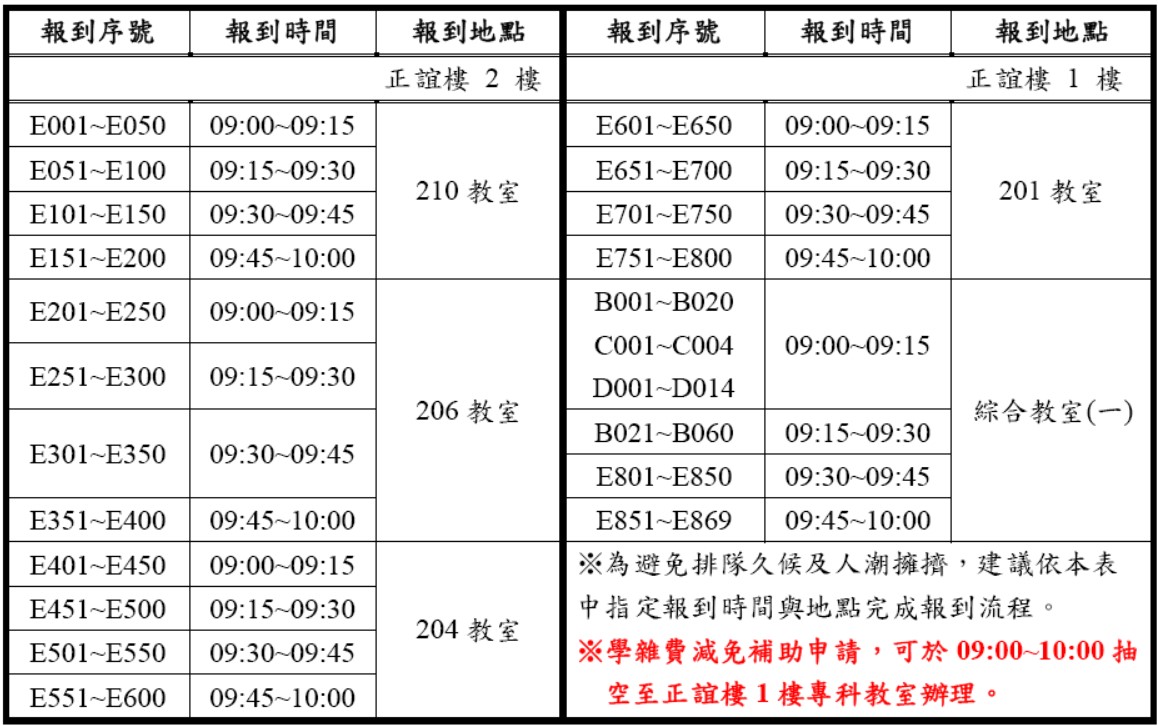 即日起至「新生報到系統」填寫資料與上傳文件,完成後自行列印報到單紙本,於112年7月14日(星期五) 09:00~11:00至指定地點繳交報到單,逾期視同放棄錄取資格。