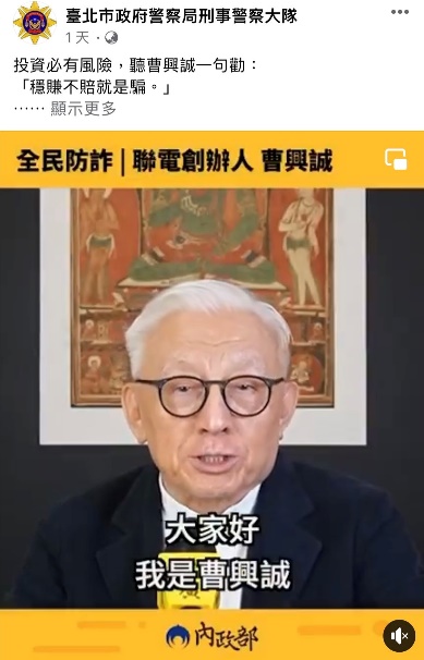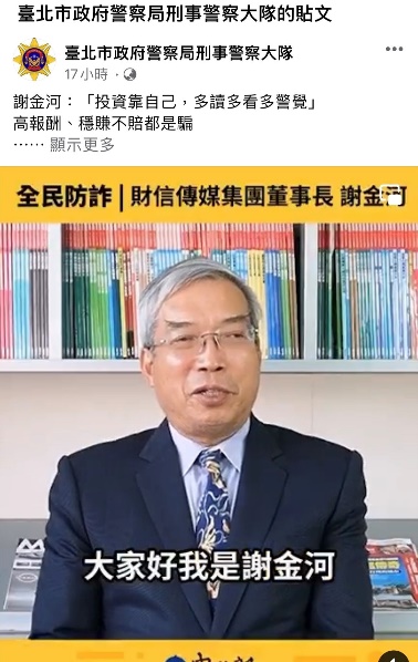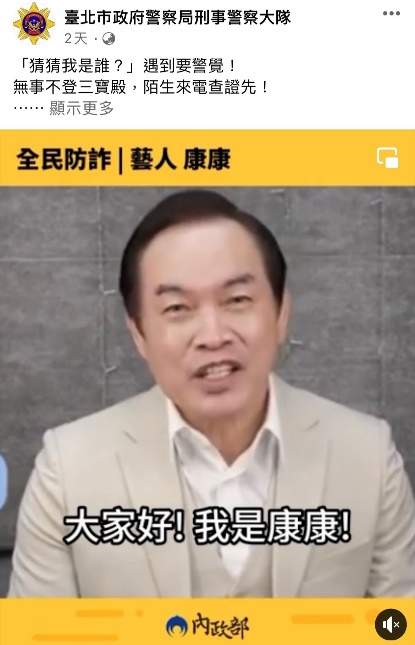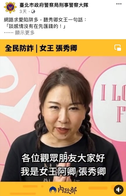 二、為加強民眾防詐意識,內政部邀請藝人張秀卿、康康、聯電創辦人曹興誠、財信傳媒集團董事長謝金河等人,針對「假愛情交友」、「猜猜我是誰」及「假投資」等高發手法拍攝反詐系列影片。