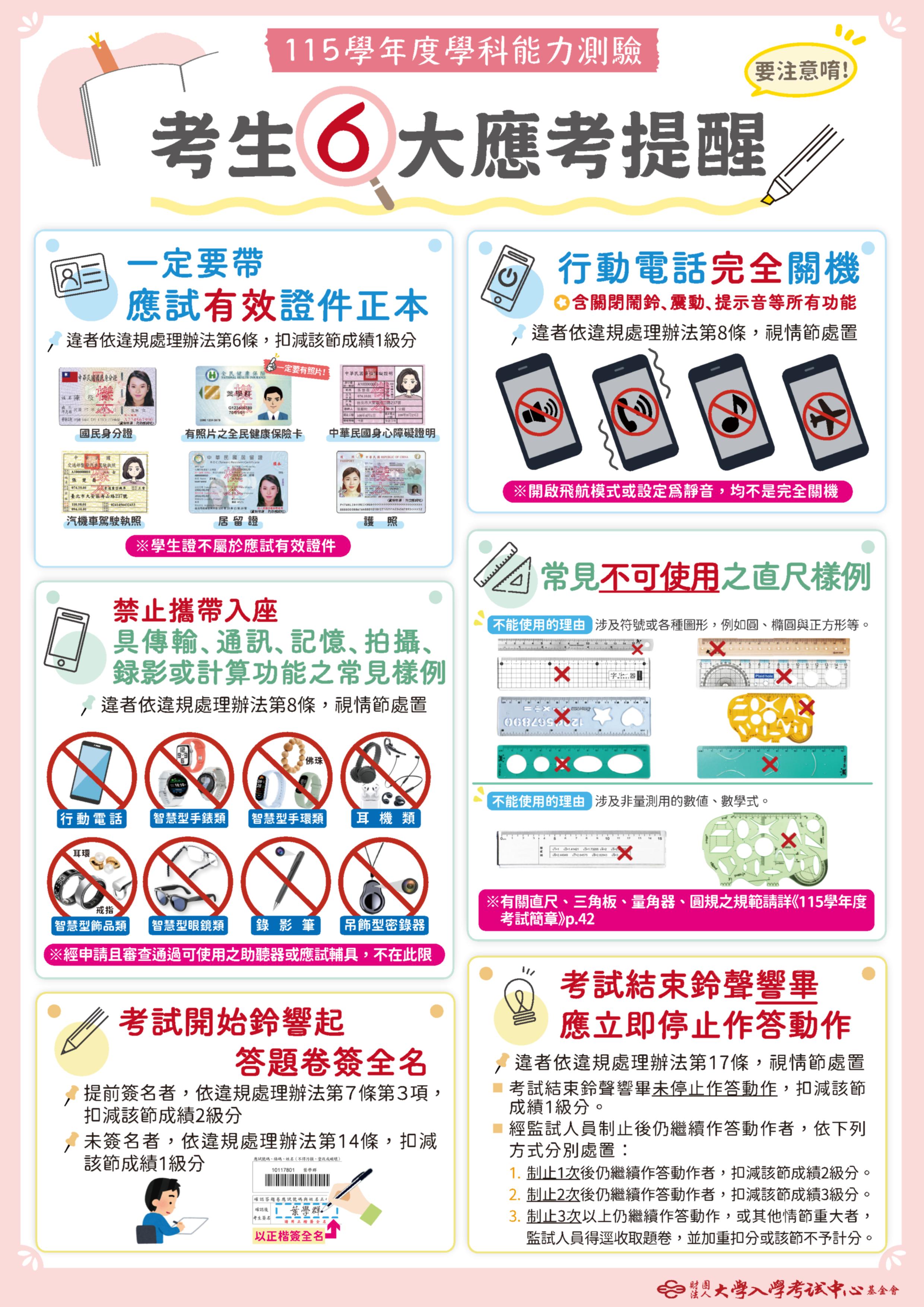 應考注意事項提醒