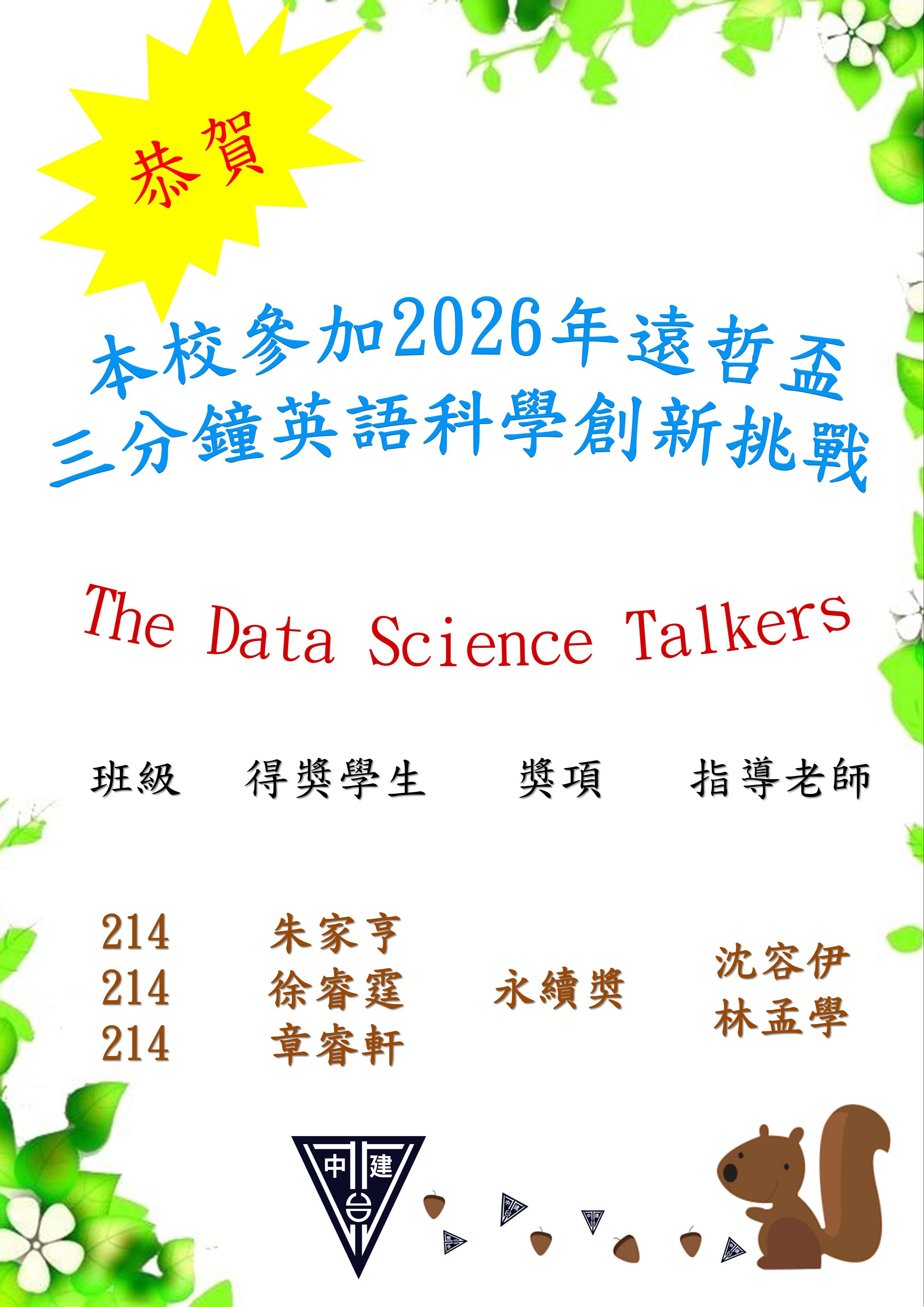 恭喜!本校同學參加2026遠哲盃三分鐘英語科學創新挑戰賽榮獲佳績。